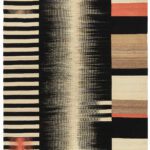 The highly detailed designs are reminiscent of abstract modernist paintings, constructed as a series of vertical panels. Individually woven by hand on narrow wooden looms, the panels are meticulously sewn together to create infinitely varied patterns. These dense flat-weave kilims are of the highest quality, ensuring their durability and longevity. Edelgrund’s signature hand-embroidered borders give the Alasht collection a refined elegance.