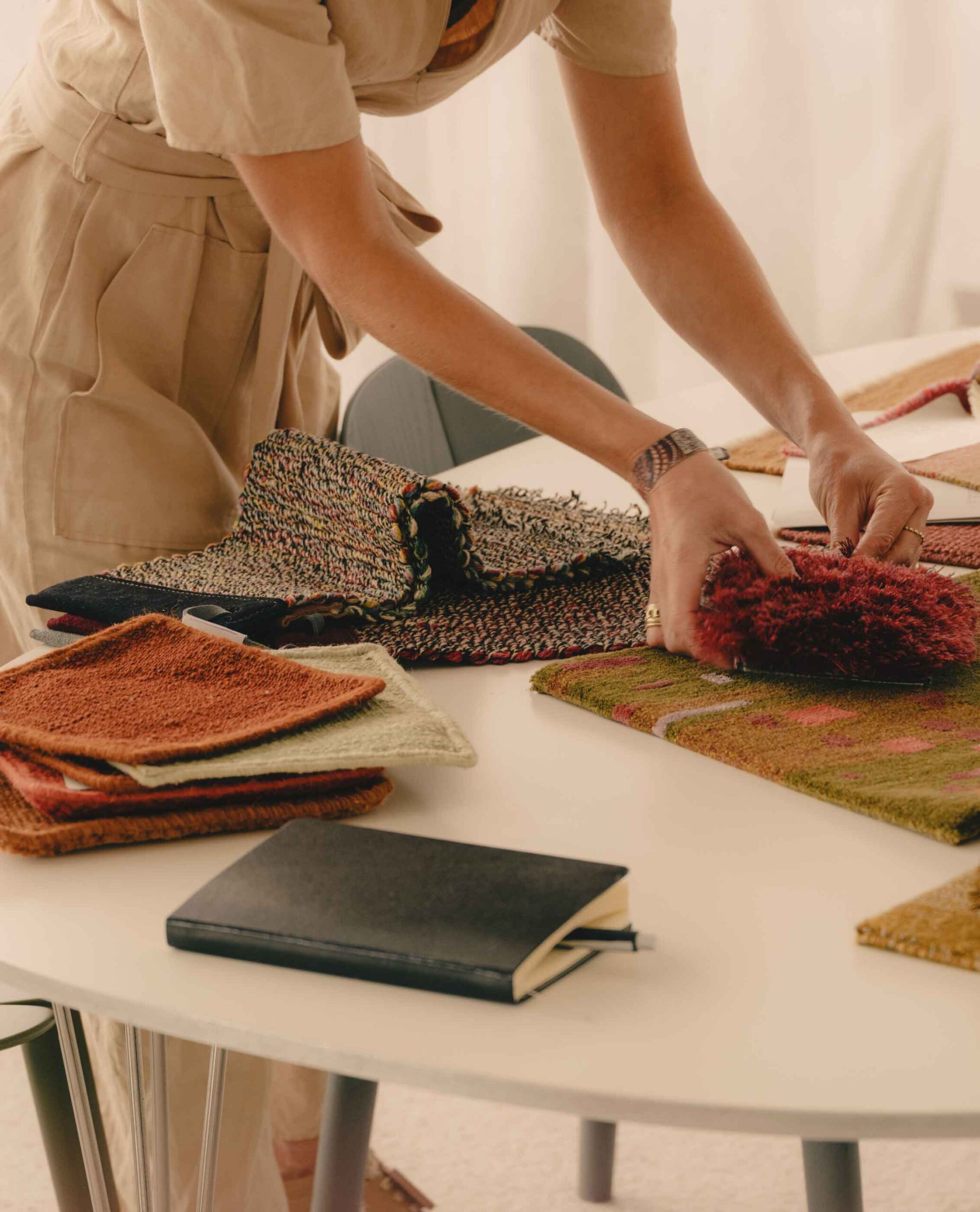 From custom dyeing to final finishing, each piece is crafted using specialised techniques and carefully selected materials to achieve a tailored result. Every stage is considered to realise the design vision with precision while meeting the performance requirements of the space. Our team brings a deep understanding of materials, construction, and application, allowing each piece to be shaped to its environment. From fibre and weave to finish and scale, we work closely with you to develop a solution that balances durability, function, and design integrity.