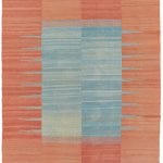 The highly detailed designs are reminiscent of abstract modernist paintings, constructed as a series of vertical panels. Individually woven by hand on narrow wooden looms, the panels are meticulously sewn together to create infinitely varied patterns. These dense flat-weave kilims are of the highest quality, ensuring their durability and longevity. Edelgrund’s signature hand-embroidered borders give the Alasht collection a refined elegance.