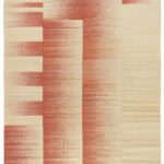 The highly detailed designs are reminiscent of abstract modernist paintings, constructed as a series of vertical panels. Individually woven by hand on narrow wooden looms, the panels are meticulously sewn together to create infinitely varied patterns. These dense flat-weave kilims are of the highest quality, ensuring their durability and longevity. Edelgrund’s signature hand-embroidered borders give the Alasht collection a refined elegance.