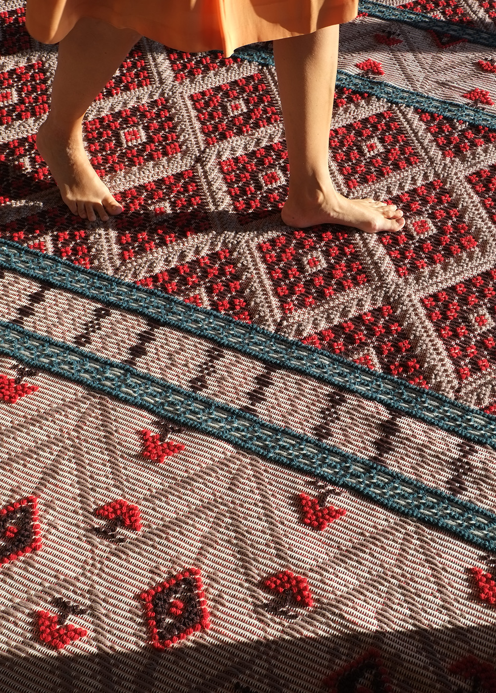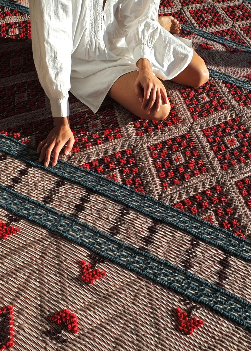Designed by Sardinian creative practice Pretziada in collaboration with rug maker Mariantonia Urru, Banded Red is a tribute to designer Eugenio Tavolara and visually refers to the contrasting designs he made for Sardinian weavers in the 1960’s.