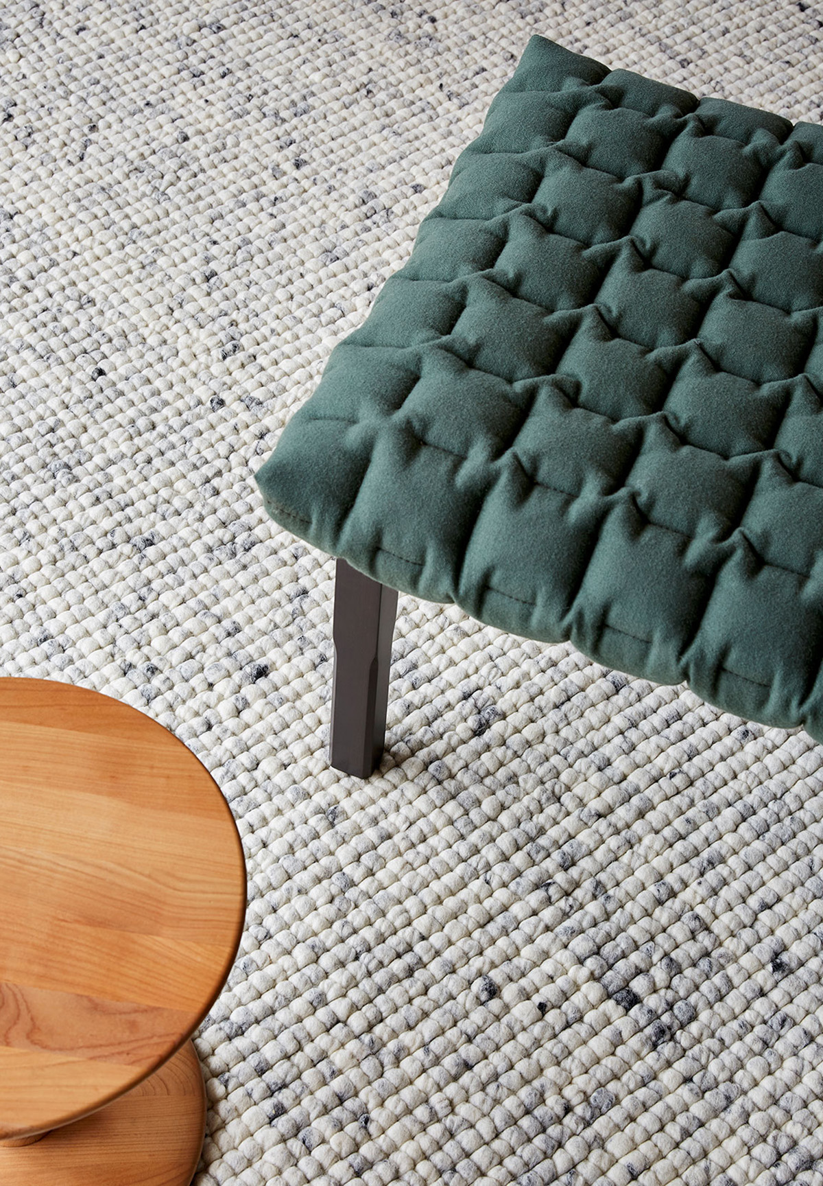 Made in The Netherlands from pure New Zealand wool, our own Beach Life range has been in production for thirty years. Thanks to a unique fusion-bonded structure, the texture of Beach Life is a firm, unchanging favourite. The variety of colour mixes offered is continually developing – though we do still offer some designs from the 1980s that occupy a special place in the Halcyon Lake heart! Thanks to a unique fusion-bonded structure which allows it to be easily joined to any size required, most Beach Life options are available within two weeks of ordering, and can also be installed as wall-to-wall carpet.