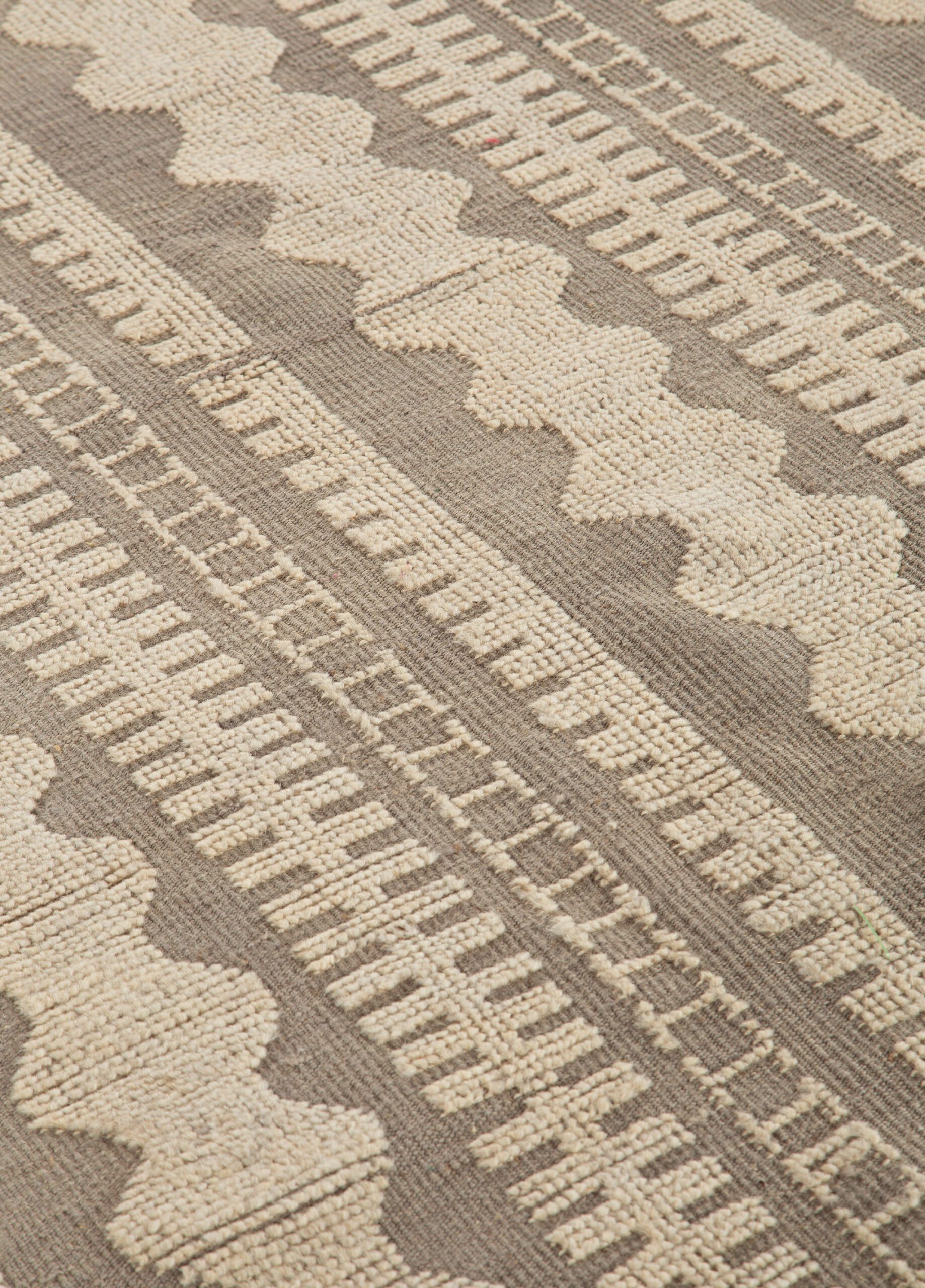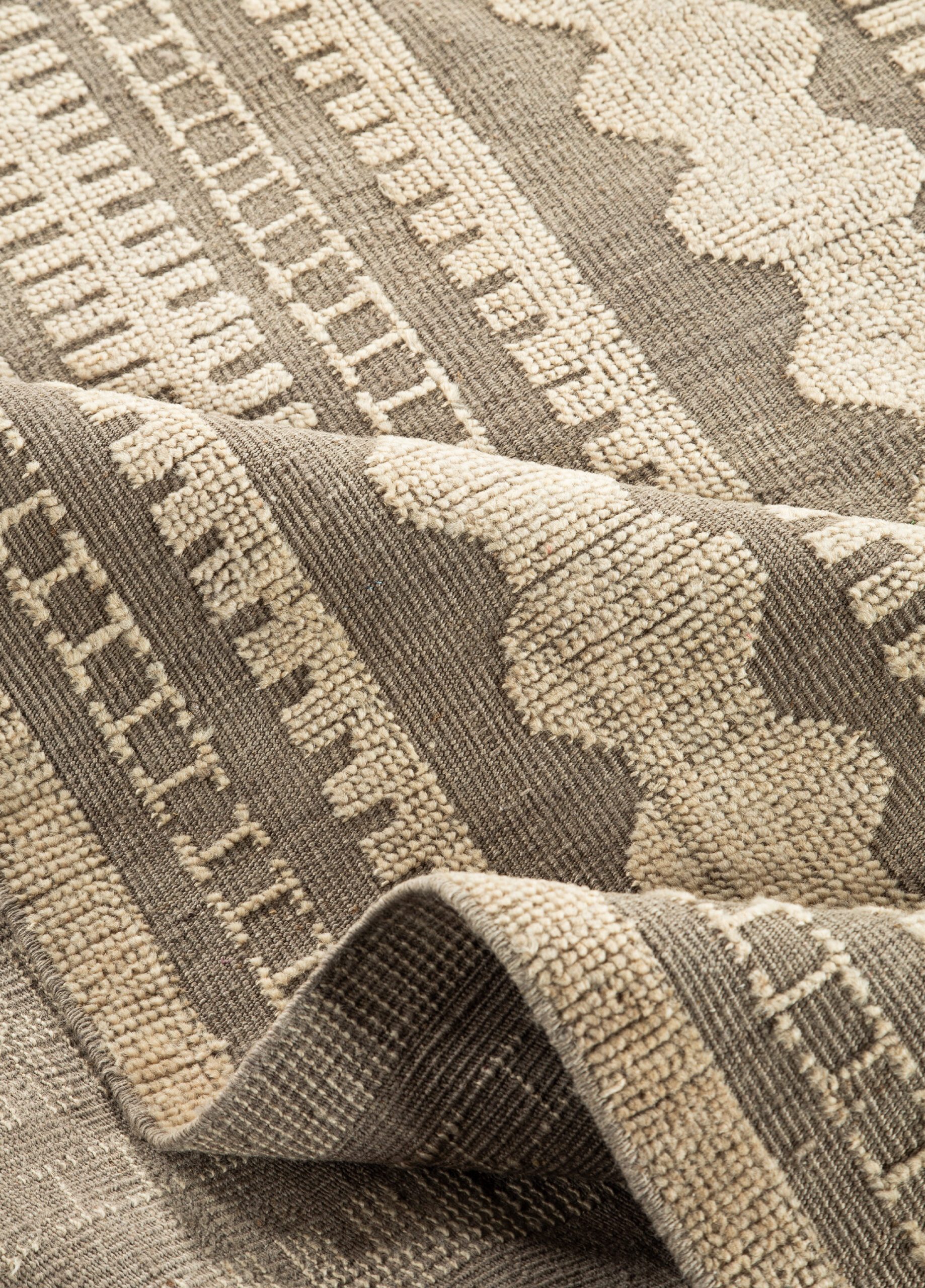 Handcrafted by talented artisans in Pakistan, our Daska collection truly embodies their skilful craftsmanship. Every rug within this collection is unique, hand-woven using either undyed yarn or earthy tones of brown, beige, and grey. These rugs feature a flat woven background that provides the perfect canvas for the tribal geometric patterns to shine, creating a subtle yet striking contrast with their higher pile height.