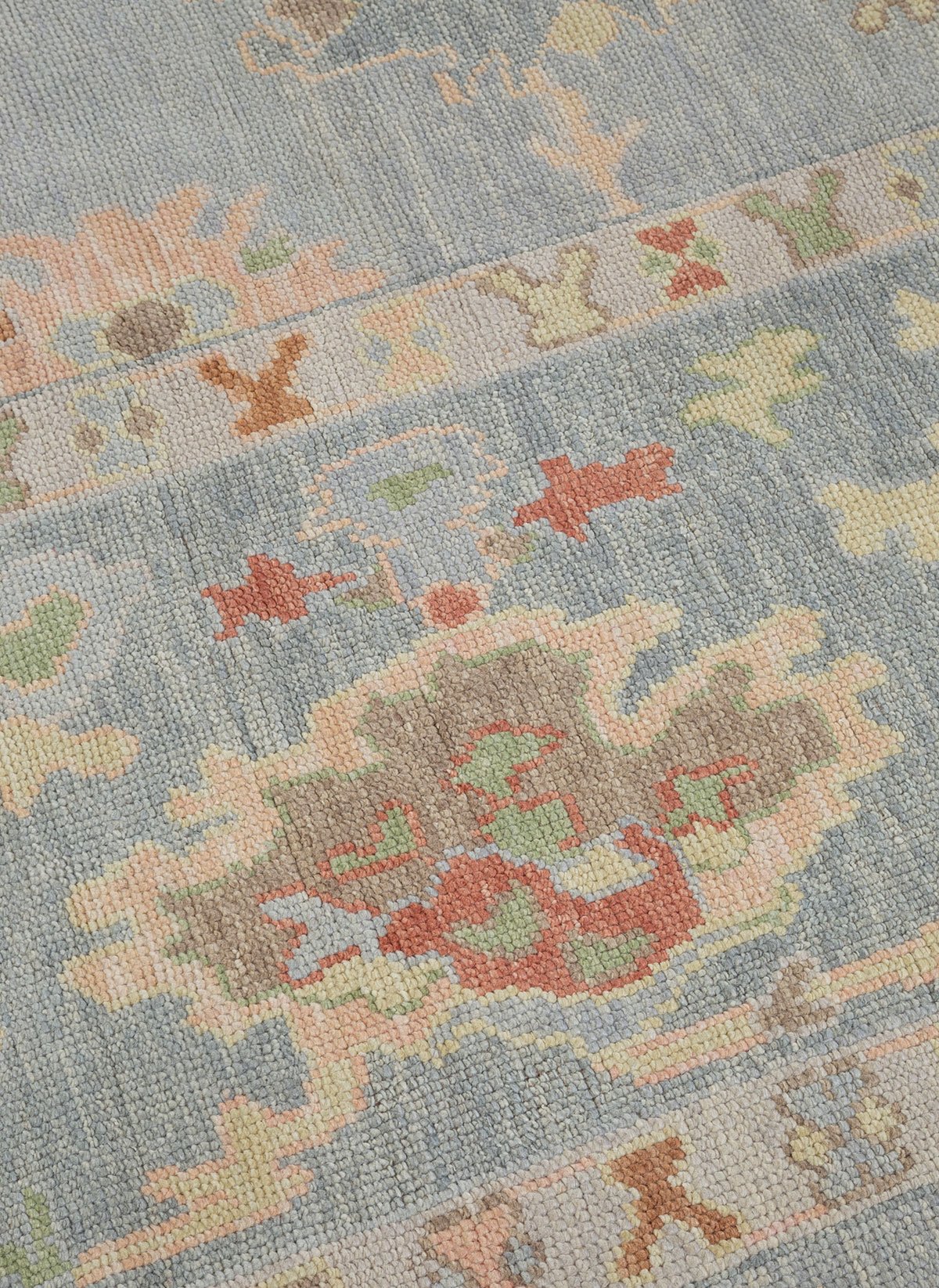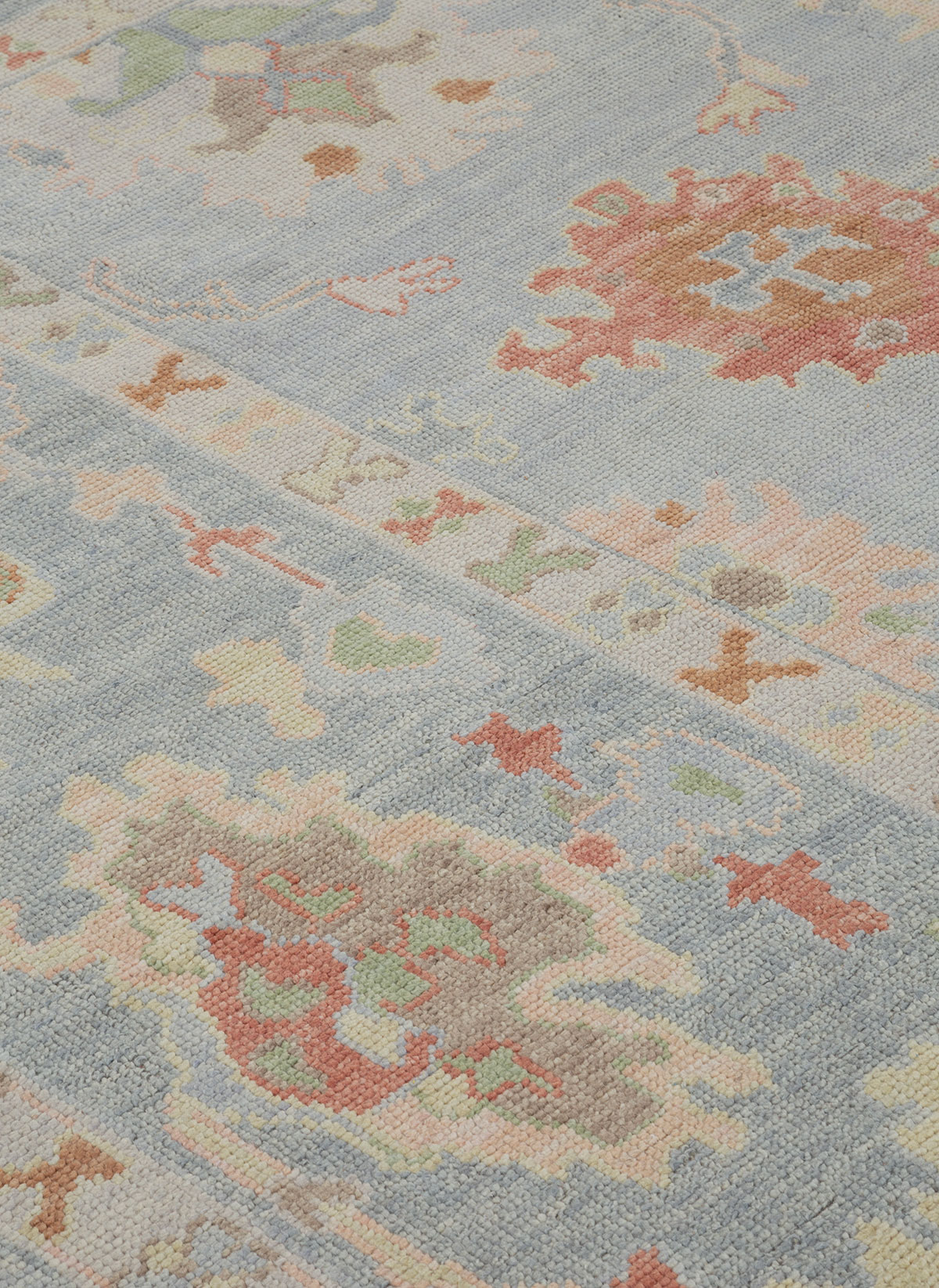 Originating in Western Turkey, Oushak rugs are known for their distinctive, large scale designs which are greatly influenced by Persian rugs. Our Giverny collection blends these traditional motifs with a modern colour palette of pastel and muted tones.