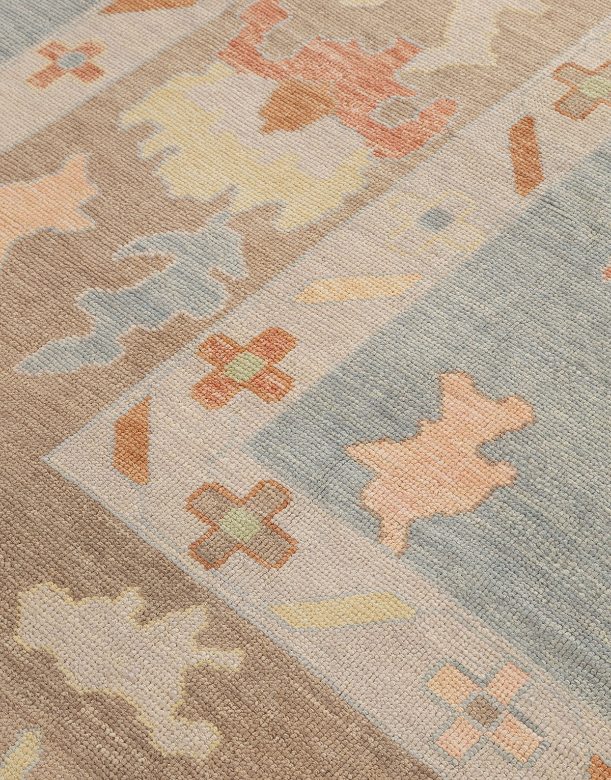 Originating in Western Turkey, Oushak rugs are known for their distinctive, large scale designs which are greatly influenced by Persian rugs. Our Giverny collection blends these traditional motifs with a modern colour palette of pastel and muted tones.