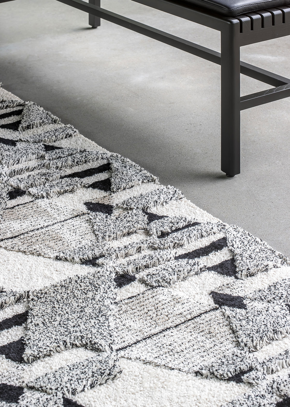 Designed and developed in Belgium by Studio Evolution 21 for JOV, Coup De Foudre features a geometric design inspired by Picasso’s ‘Ma Jolie’ painting. This abstract interpretation is made up of a combination of high quality materials with contrasting colours and varying tufting techniques to create a multi-textural, 3-dimensional rug.