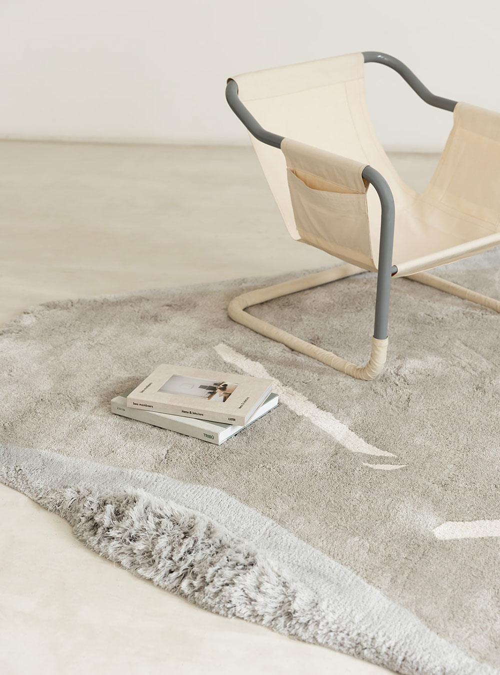 Hand-tufted in pure Belgian linen, merino wool and cotton.