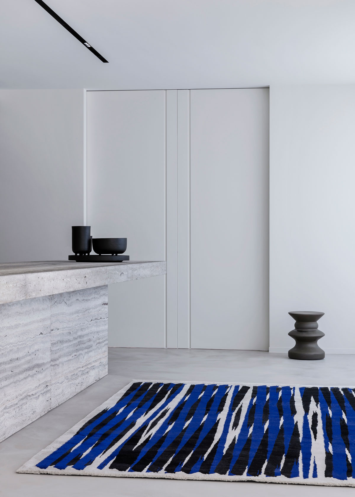 Hand-tufted in fine New Zealand wool, linen and pure silk. Can be customised in other qualities on request.