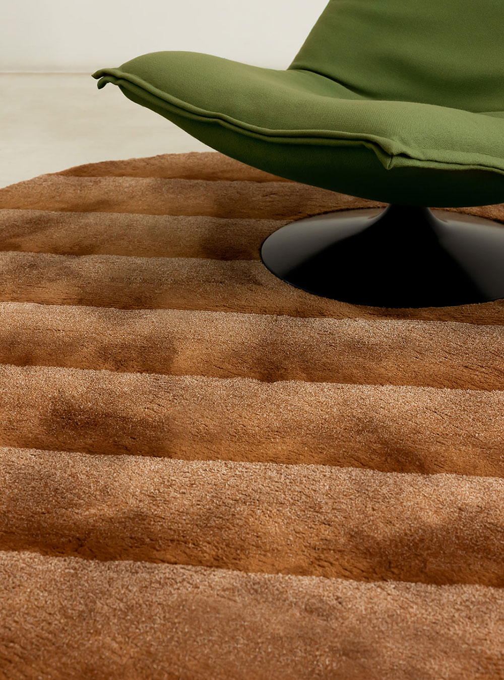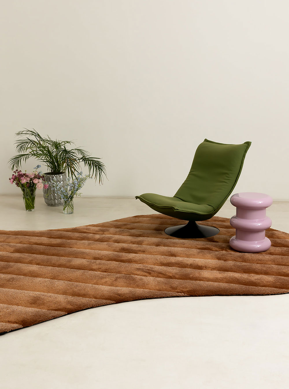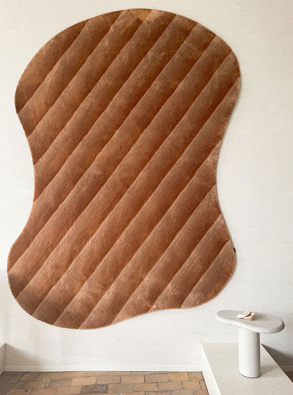 Rainbow Glitch was originally designed to complement the organic shape of the ‘Out Of Line’ table collection by Belgian designer Bieke Casteleyns. Hand-tufted with pure cotton, a soft and durable yarn with a subtle lustre, Rainbow glitch combines retro graphic aspects and a unique ombré effect to create a statement piece.