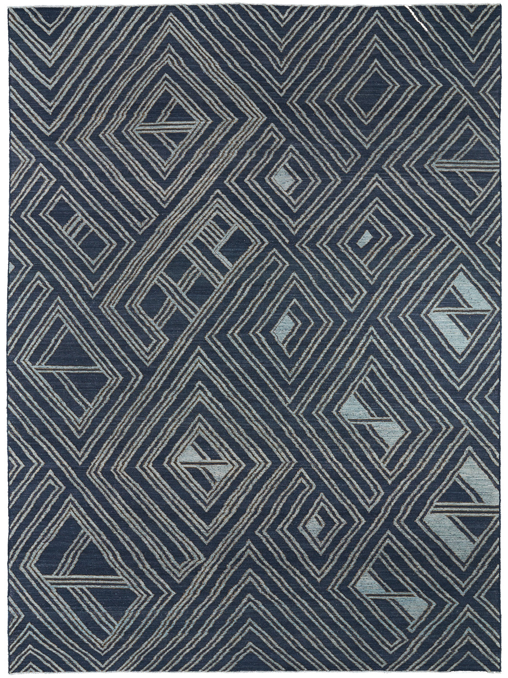 Crafted to improve with age and develop a patina in the tradition of antique carpets. The unique designs in this collection stem from an exploration of African culture and the shapes and colours found in its traditional textiles. Designed by Jawed Ahmadi, the compositions are mostly inspired by Kuba cloth; commonly produced in the Democratic Republic of Congo and typically characterised by vast and varied abstract geometric designs.