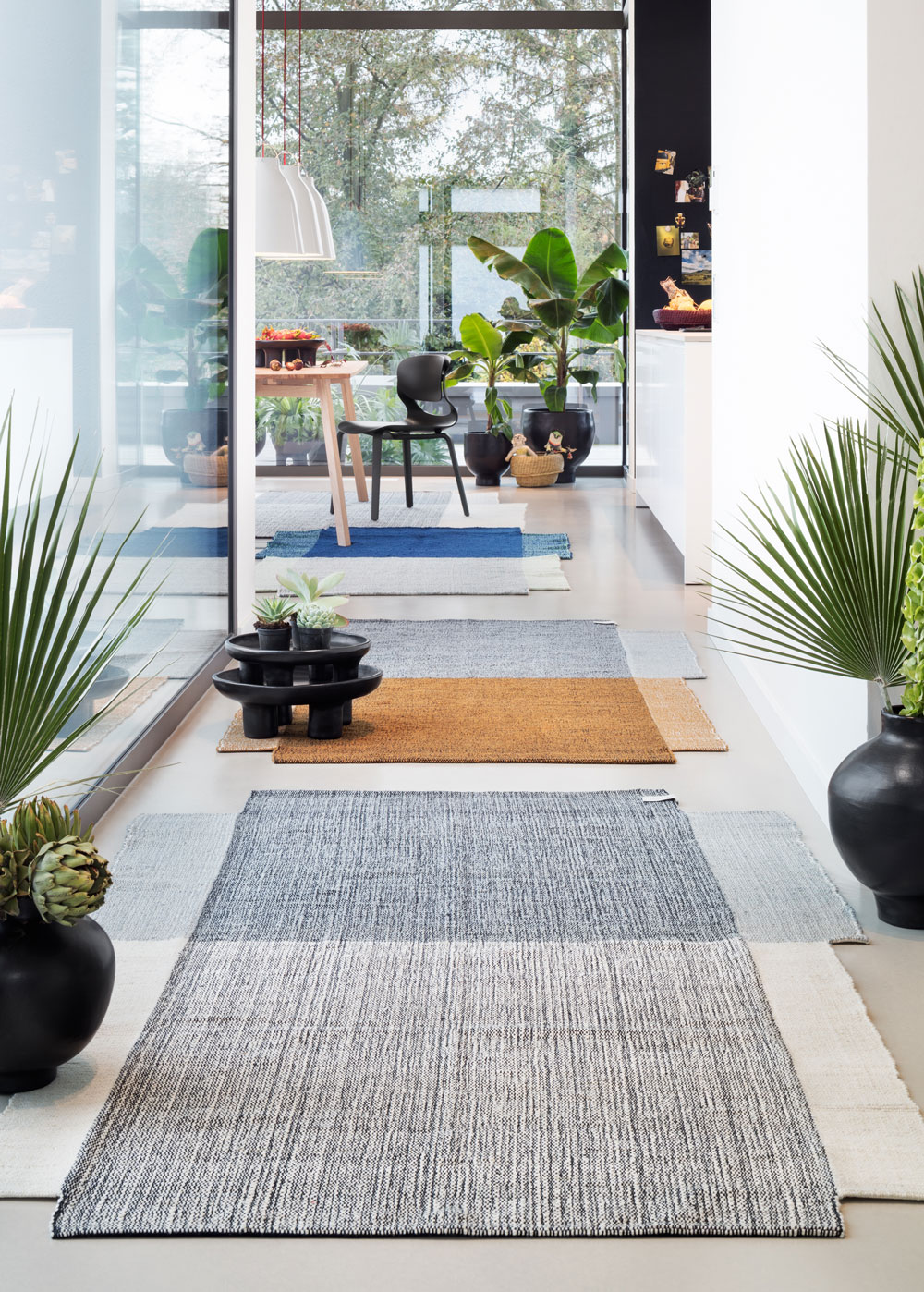 Designed by Sebastian Herkner, NOBSA has an elongated centre, creating the effect of a smaller rug lying atop a larger one. The choice of colours, coupled with a particular technique of weaving in different directions, lends NOBSA its individual character. With hand-finished edges, the rugs come in three sizes and seven colourways.
