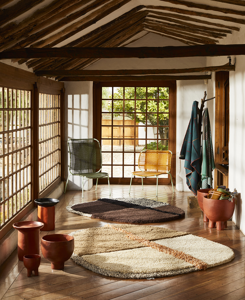 NUDO is hand-woven with pure new wool according to traditional Colombian crafts, and produced in Cajicá, a town north of Bogotá at over 2500m above sea-level. Cajicá is known for its wool processing techniques. There, artisans use vertical looms and complex, time-consuming manual techniques to craft these rugs.