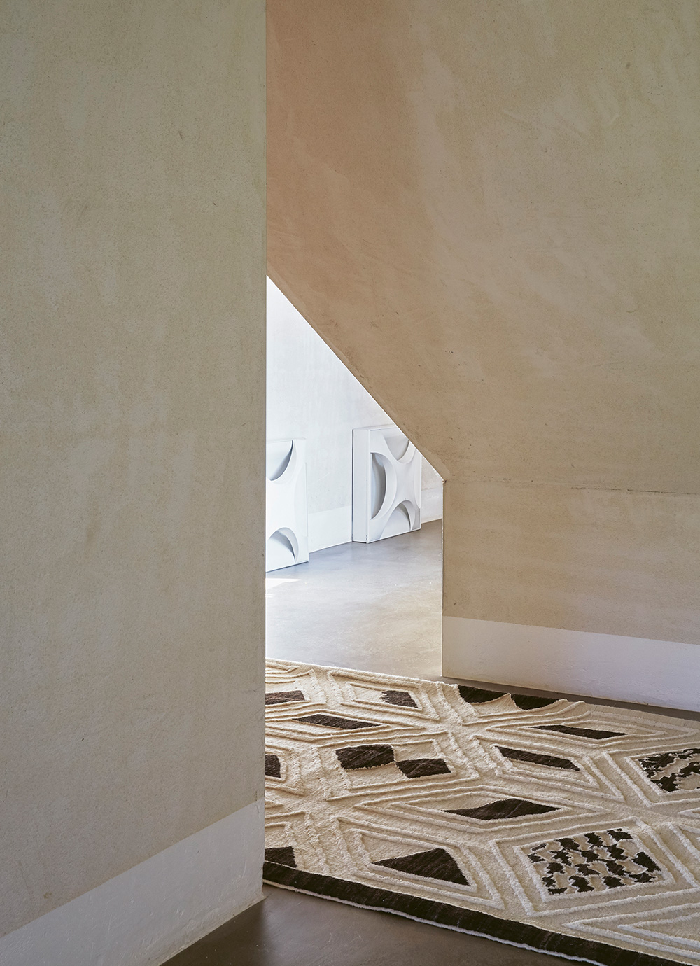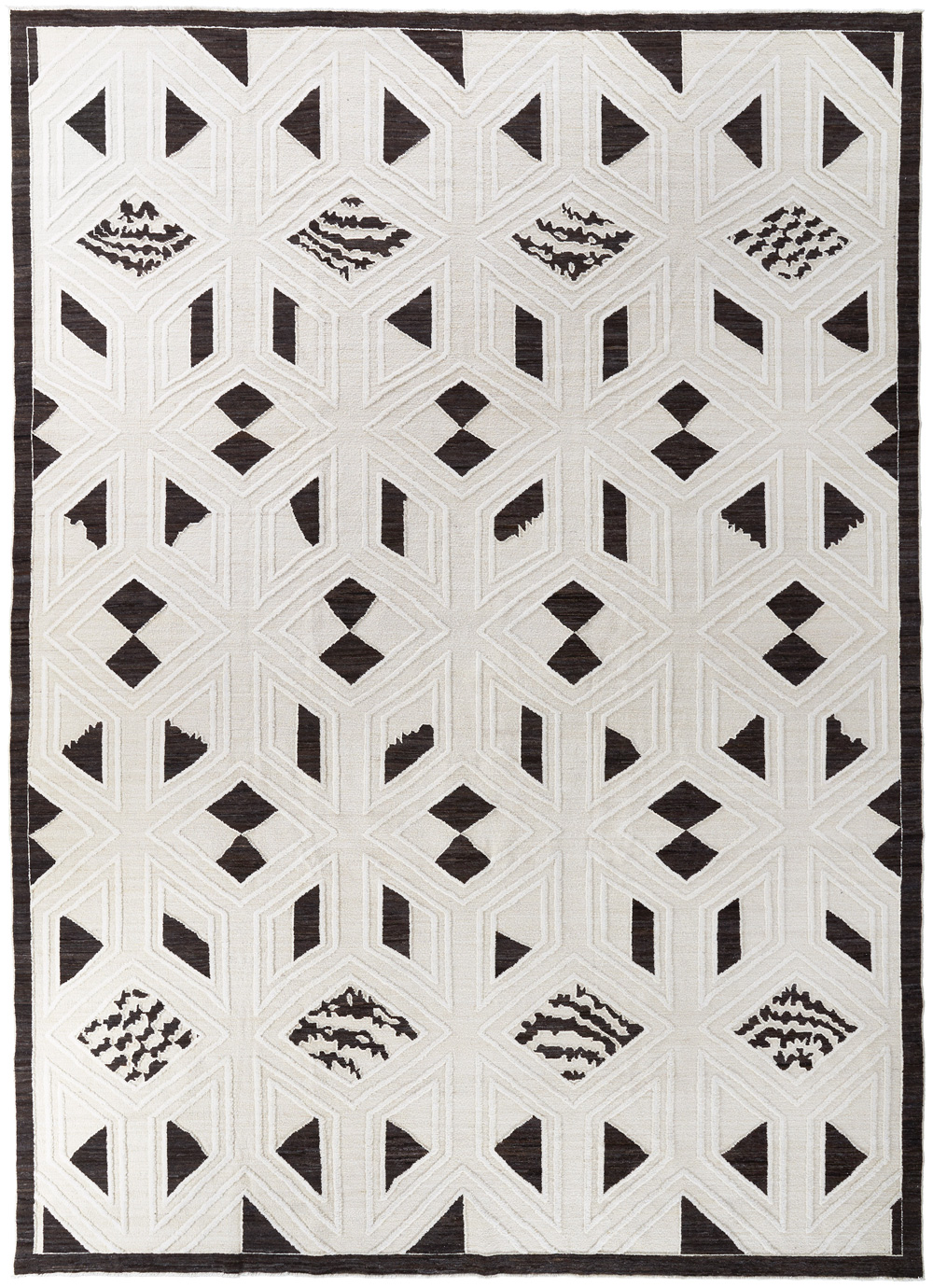 Crafted to improve with age and develop a patina in the tradition of antique carpets. The unique designs in this collection stem from an exploration of African culture and the shapes and colours found in its traditional textiles. Designed by Jawed Ahmadi, the compositions are mostly inspired by Kuba cloth, commonly produced in the Democratic Republic of Congo and typically characterised by vast and varied abstract geometric designs.