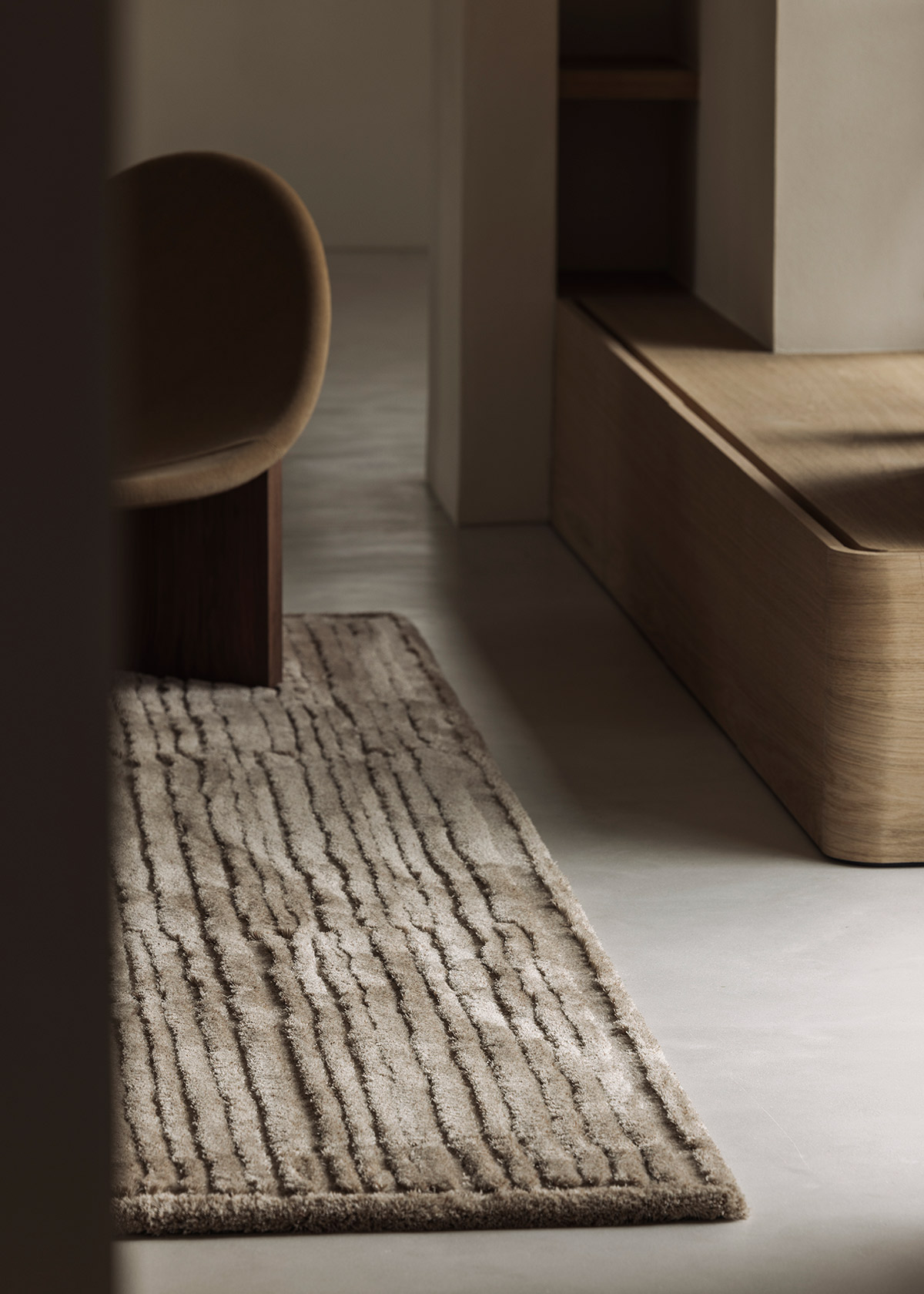 Designed and developed in Belgium by JOV, the Thinstripes rug transforms the classical stripe motif into a study of texture and rhythm. Alternating cut-pile and loop-pile create subtle lines across the surface, adding depth, dimension and quiet movement. Handcrafted in 100% New Zealand merino wool and cotton, it combines tactile comfort with refined simplicity. Thinstripes reflects JOV’s commitment to precision craftsmanship and material integrity.